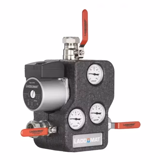 Laddomat 21-60 med Cu28-anslutning och en öppningstemperatur på 78 °C är en komplett enhet som ger enkel och säker inkoppling och perfekt laddning av din ackumulatortank. Laddomat 21-60 har en högre öppningstemperatur vid höga panneffekter jämfört med liknande produkter tack vare en effektiv hetvattensreglering. Rekommenderad panneffekt för denna laddomat är högst 80 kW.